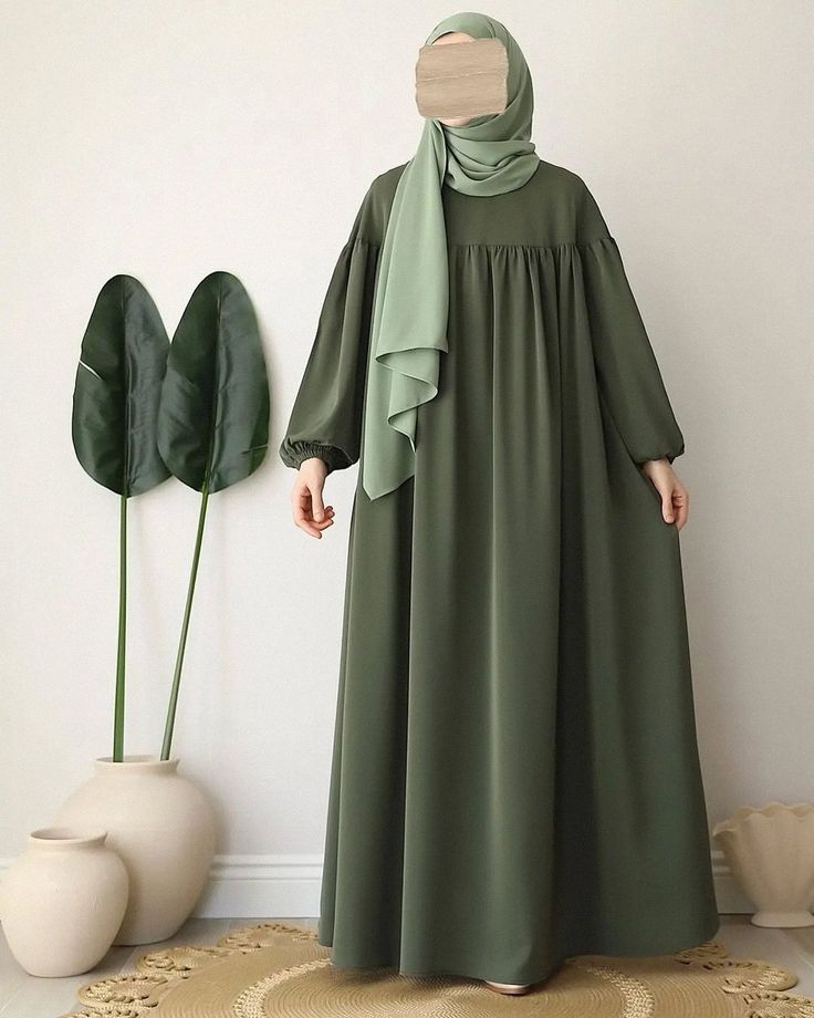 This Olive Green Abaya is a stunning fusion of feminine detailing and modest design, featuring an intricate gathered yoke that flows into a voluminous, floor-length skirt. The fine pleating across the chest provides a rich, textured appearance that captures the light beautifully, setting it apart from standard minimalist designs. Complementing the bodice, the matching smocked elastic cuffs add a refined touch to the sleeves, creating a cohesive and high-end aesthetic. Made from premium, soft-touch fabric in a trendy earthy green tone, this abaya is perfect for women who want to make a subtle yet stylish statement at social gatherings or formal events. It offers a refreshing, sophisticated look that balances traditional modest values with contemporary fashion-forward elements.