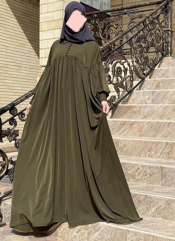 - Elevate your modest wardrobe with our Premium Olive Green Oversize Pleated Abaya, exclusively at Eleganza Comfort. Crafted from high-quality, breathable Nida fabric, this abaya is designed for both style and comfort. The elegant pleats provide a sophisticated flow, making it perfect for formal events, evening gatherings, or stylish daily wear.