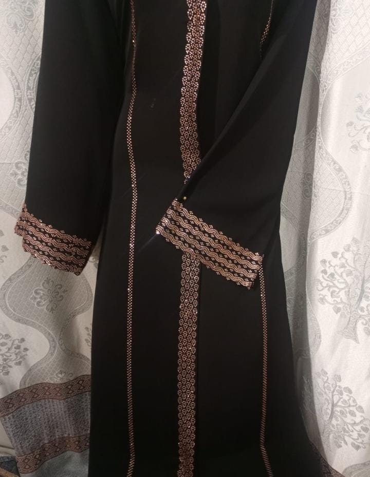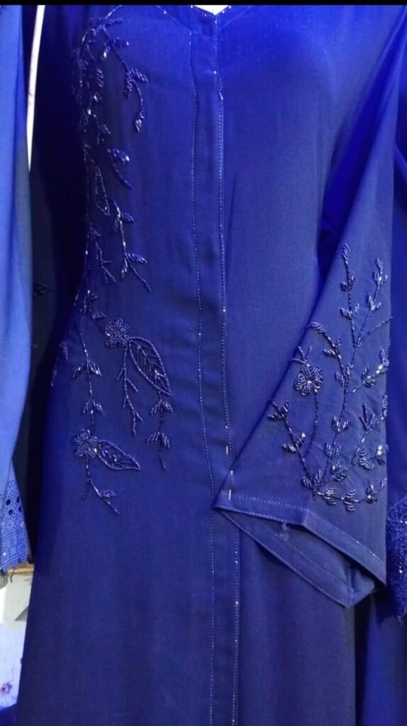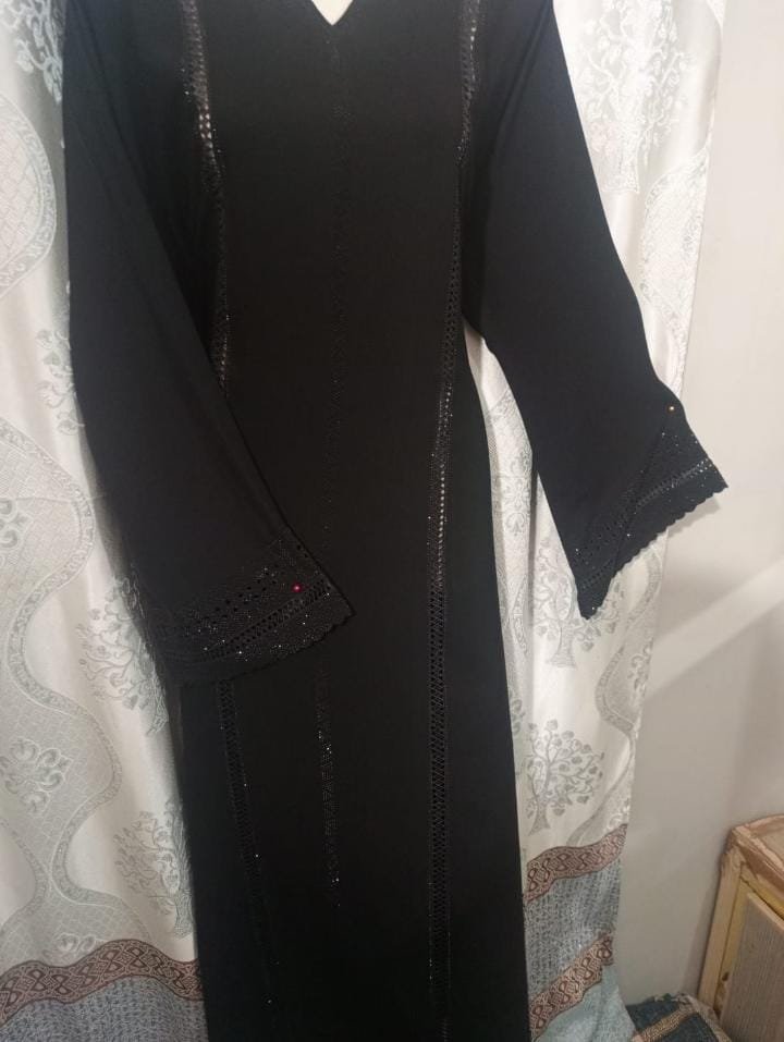 legant Handwork Abaya – Nida Korean Sentex FabricStep into timeless elegance with our handcrafted abaya made from premium Nida Korean Sentex fabric. Renowned for its luxurious softness, lightweight feel, and smooth drape, this abaya is perfect for both everyday wear and special occasions.Fabric: High-quality Nida Korean Sentex – breathable, flowy, and durableDesign: Intricate handwork embellishments on sleeves and front panelStyle: Modest, graceful silhouette with a relaxed fitComfort: Soft on the skin, perfect for all-day wearOccasions: Ideal for formal gatherings, festive events, or elegant daily wearA perfect blend of tradition and sophistication, this abaya is a wardrobe essential for those who value craftsmanship and comfort.